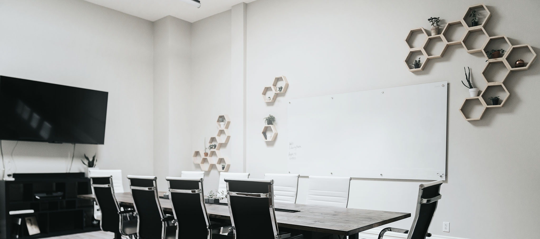 Conference Room complete with large table, 10 seats, 70” TV w/hookups, and Whiteboard. Private, spacious, and perfect for productive team meetings.