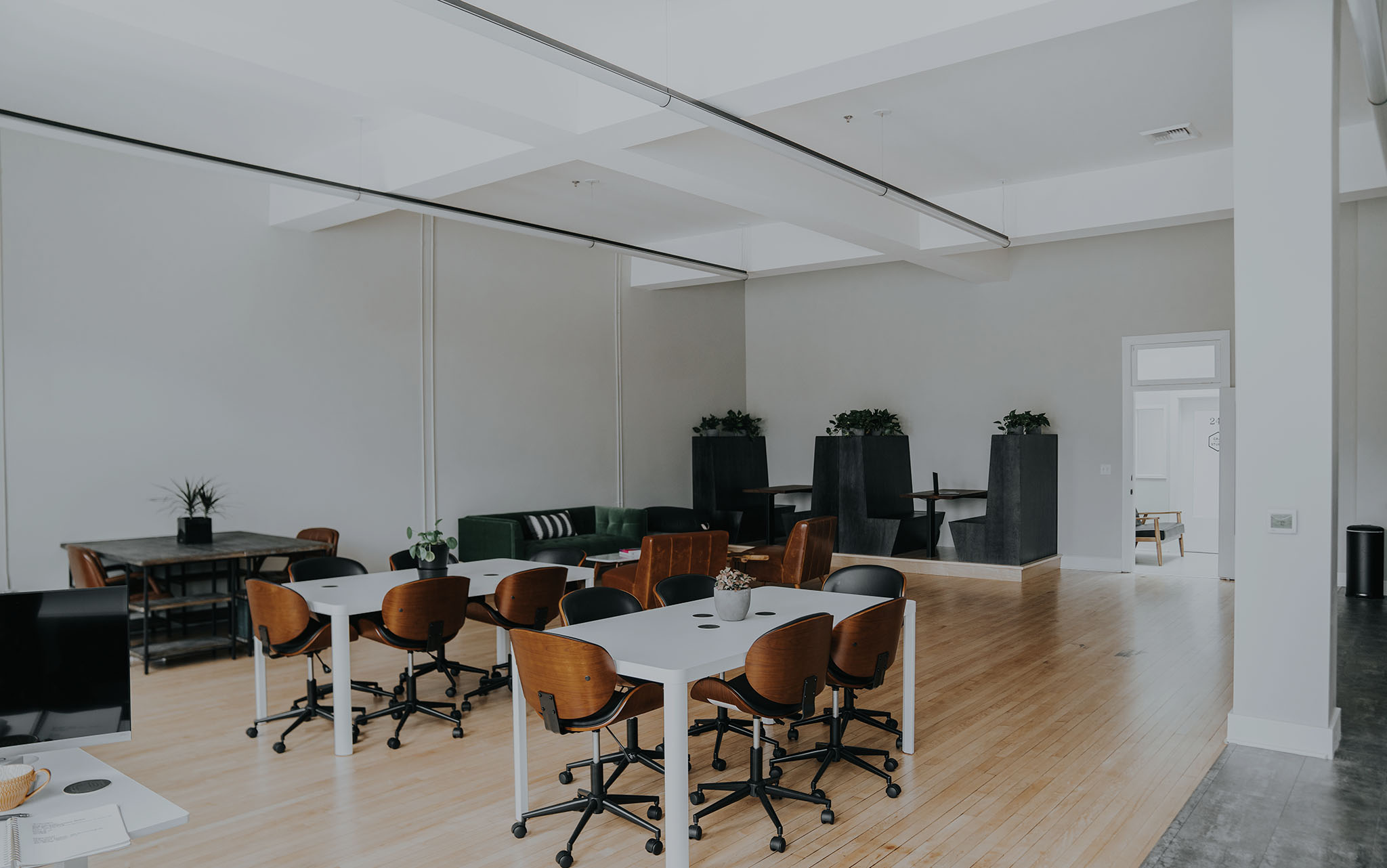 A Co-Working Space geared towards creatives with a mix of non-traditional seating options as well as dedicated desks.